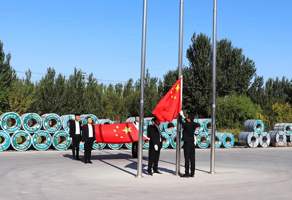 祖國華誕之日,舉行升國旗儀式。回顧過去,展望未來,既有創(chuàng)業(yè)的艱辛,又有**成績(jī)的自豪,更有再創(chuàng)輝煌的動(dòng)力。贊龍慶鋼構(gòu)的快速發(fā)展離不開全體員工的共同努力。在國旗下,我們?yōu)辇垜c鋼構(gòu)的發(fā)展立下心志,我們要團(tuán)結(jié)一心,統(tǒng)一思想,提高認(rèn)知,把個(gè)人的人生價(jià)值追求融入到龍慶鋼構(gòu)的經(jīng)營發(fā)展中,以高度的“主人翁”意識(shí)狠抓各項(xiàng)目標(biāo)任務(wù)的落實(shí),踐行龍慶企業(yè)文化,為龍慶實(shí)現(xiàn)企業(yè)目標(biāo)持續(xù)奮斗!
