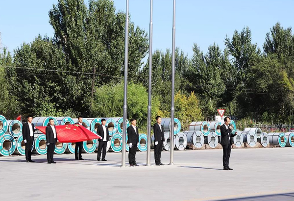 在薩大路辦公樓旗臺(tái)前,全體職工整齊列隊(duì),莊嚴(yán)肅穆,當(dāng)身姿矯健的護(hù)旗手邁著整齊的步伐,護(hù)送著國旗來到旗桿下。隨著一聲號(hào)令,在雄壯的國歌聲中,鮮艷的五星紅旗冉冉升起,現(xiàn)場(chǎng)全體人員昂首挺胸,用行注目禮的方式表達(dá)了黨的無限忠誠和*誠摯的祝福。升旗儀式結(jié)束后,總經(jīng)辦王主任發(fā)表了講話,向奮戰(zhàn)在公司各個(gè)崗位上的干部職工致以節(jié)日的問候,邁入金秋十月,進(jìn)入四季度,又到了全年目標(biāo)攻堅(jiān)奮戰(zhàn)之時(shí),我們要再接再厲,勇于擔(dān)當(dāng),不懈怠,努力工作,擼起袖子加油干,全力以赴打好四季度**一仗,為公司**完成全年生產(chǎn)經(jīng)營任務(wù)目標(biāo)共同努力奮斗!